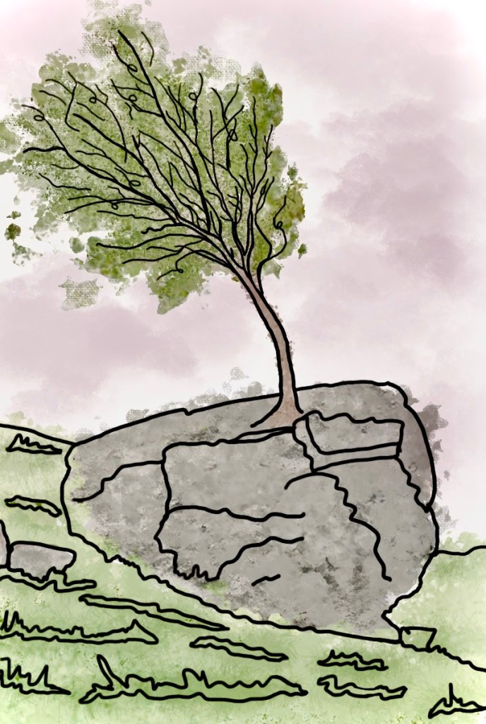It was years later that a band of marauders looking for a place to rest happened upon that boulder. As they sat around it, one of the marauders noticed below on the side of the boulder, was etched an inscription in perfect writing that read, “Here lies humanity, it walked itself into the fire, and died with a whimper.”
